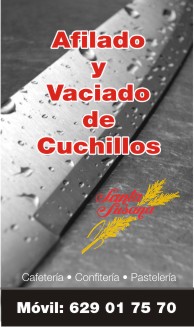 Afilamos todo tipos de cuchillos, "Jamoneros", "Carnicero", "Deshuese", etc..., ademas de Machetes, Navajas o Tijeras.